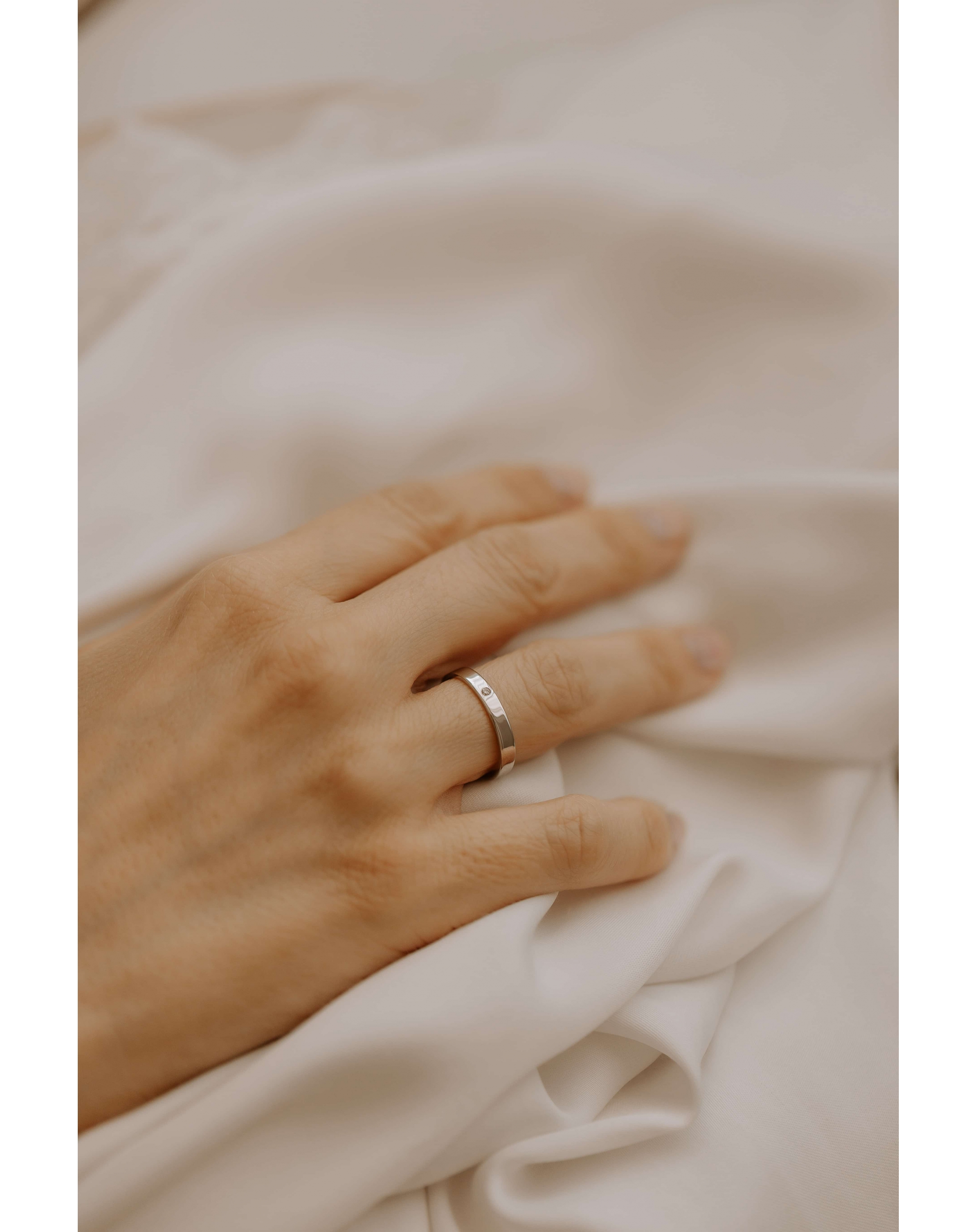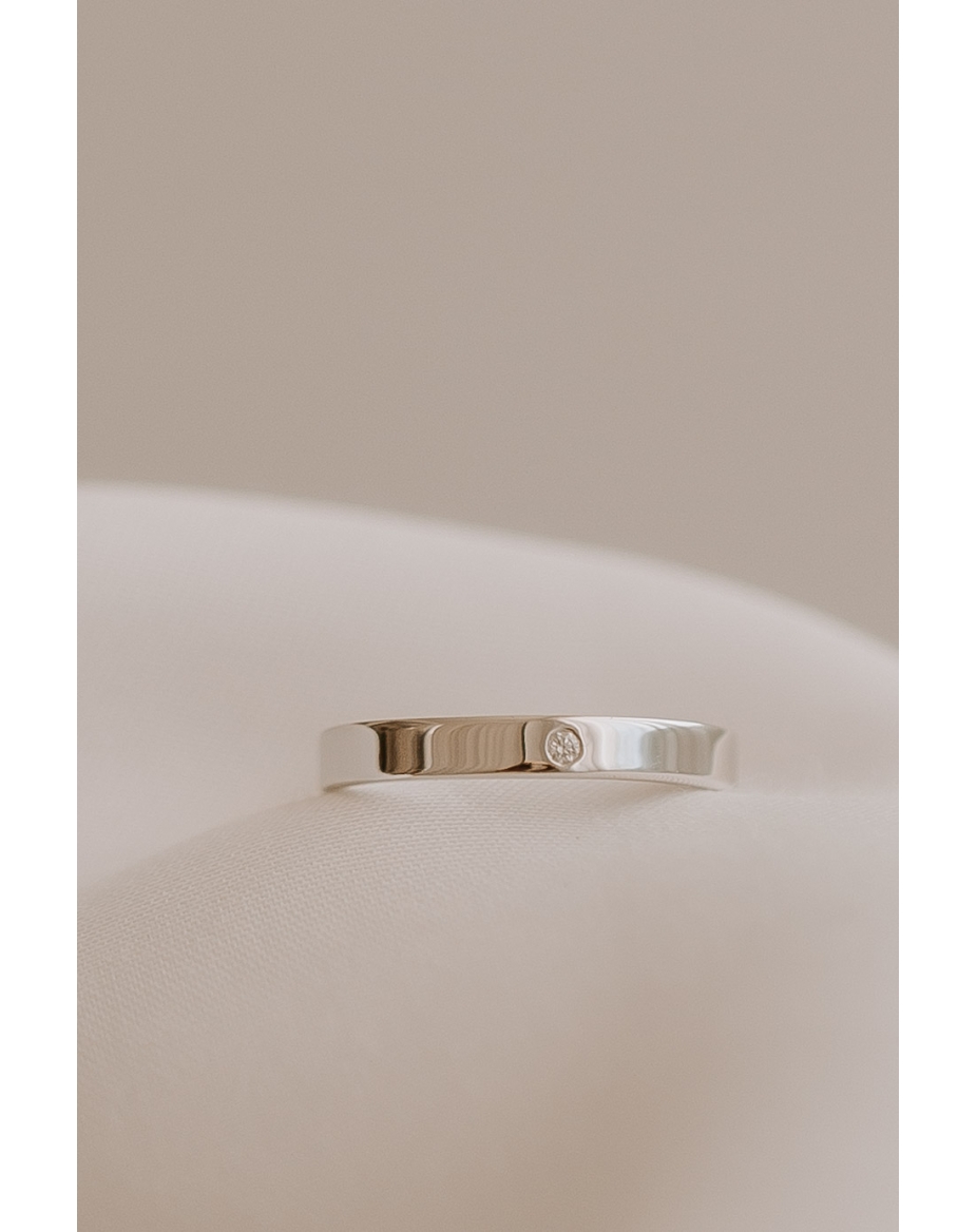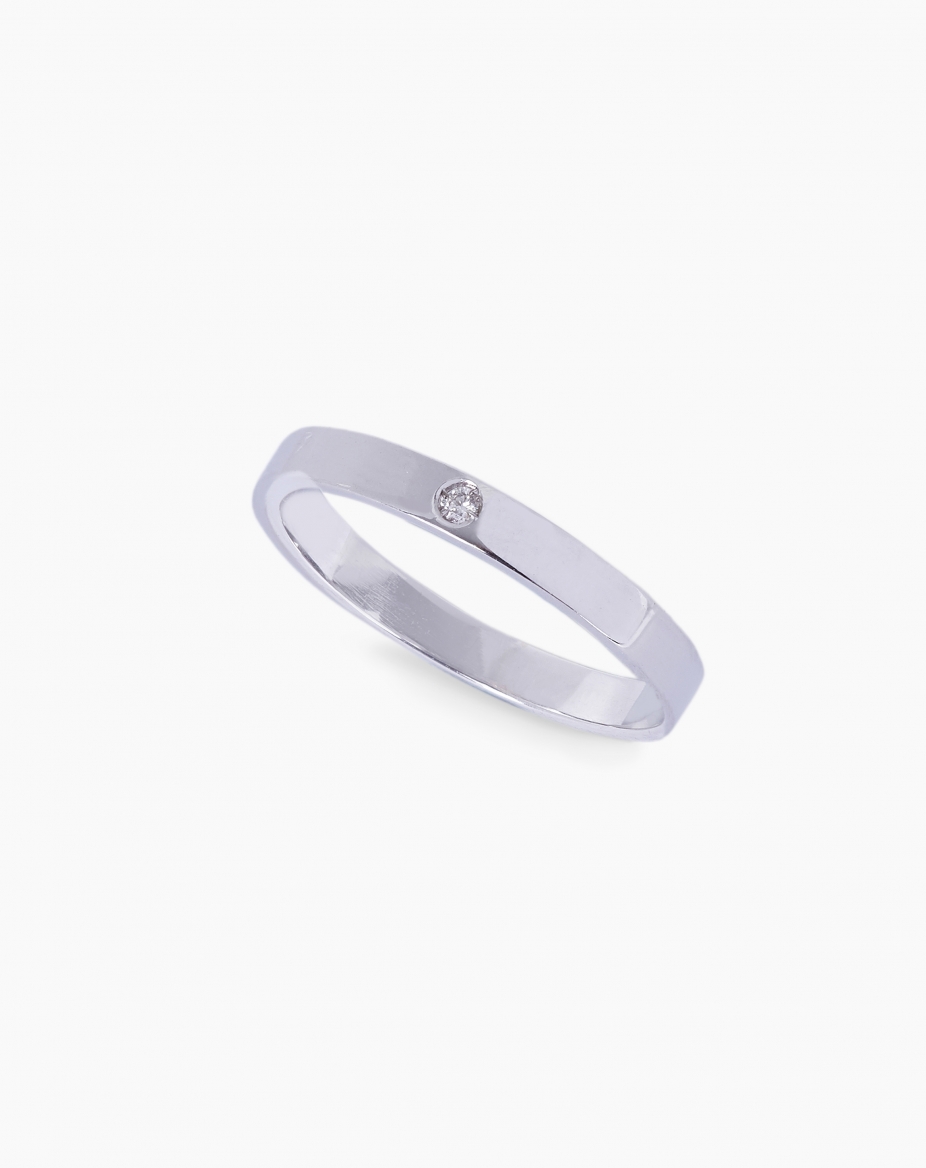 Alianza de oro blanco, amarillo o rosa y con acabado pulido. Lleva un diamante de 1,5mm de diámetro, haciendo de esta joya una pieza válida como sortija de compromiso, alianza o anillo para regalar en un momento especial. Oro de 18 kts.
